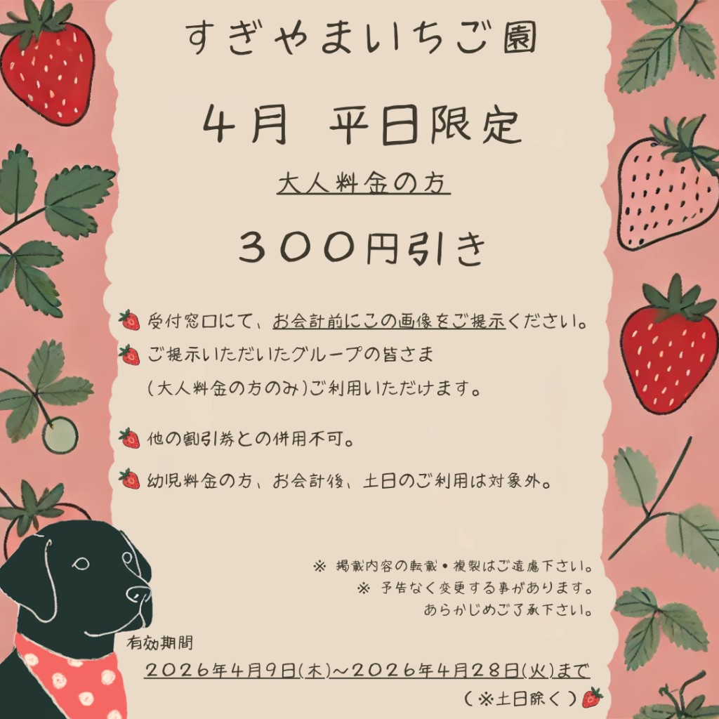 日頃の感謝を込めて、4月の平日限定でご利用いただける、お得な割引クーポンを配布中です。
